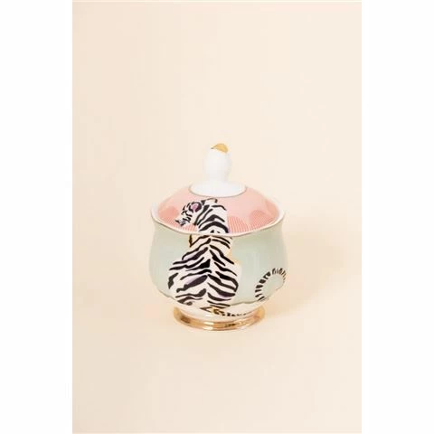 Decorated with a quirky tiger design and pastel colours, this bone china sugar bowl is finished with golden-edged detailing, creating a beautiful piece. The Tiger Sugar Bowl is designed to be treasured or to gift.